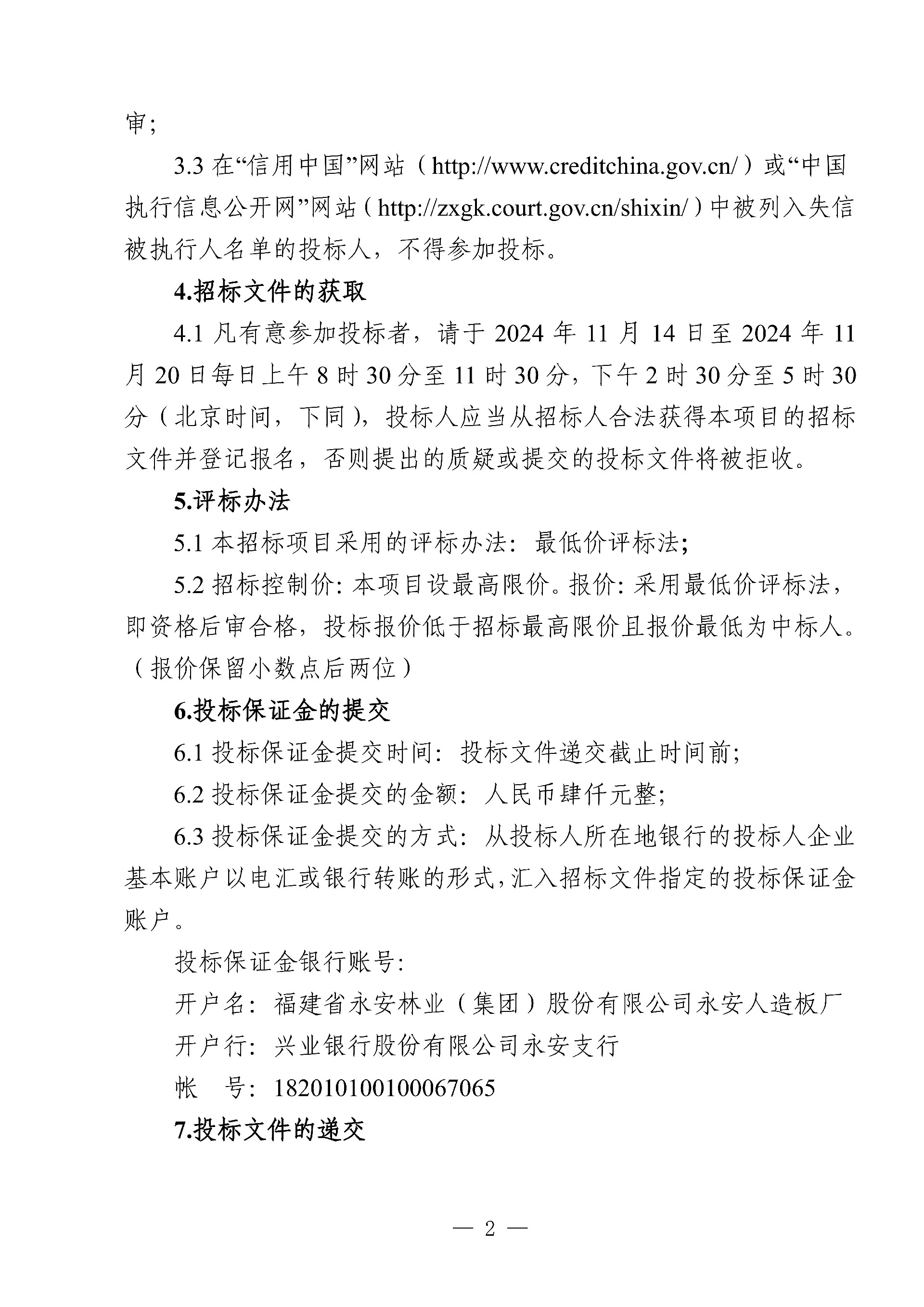 永安人造板廠工業(yè)甲醛溶液采購項目招標公告