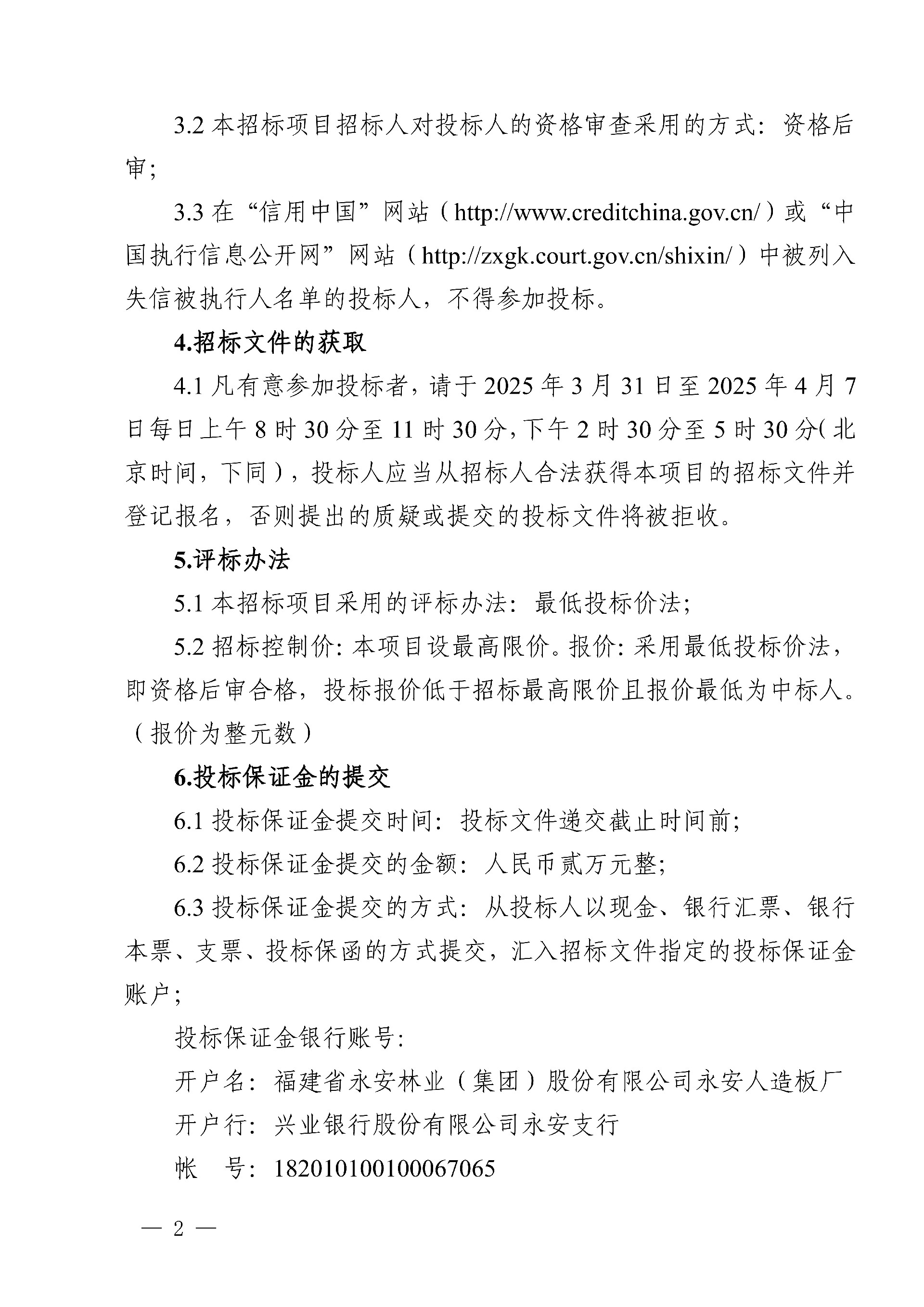 永安人造板廠三聚氰胺采購項(xiàng)目招標(biāo)公告