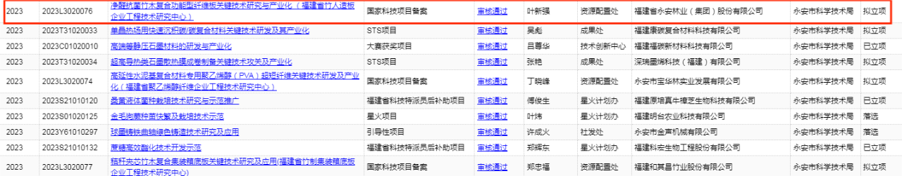 近日,福建省科學(xué)技術(shù)廳公布2023年度福建省中央引導(dǎo)地方科技發(fā)展資金項(xiàng)目擬立項(xiàng)企業(yè)項(xiàng)目公示清單,永安林業(yè)“凈醛抗菌竹木復(fù)合功能型纖維板關(guān)鍵技術(shù)研究與產(chǎn)業(yè)化”項(xiàng)目成功入選,項(xiàng)目類型為國家科技項(xiàng)目備案。