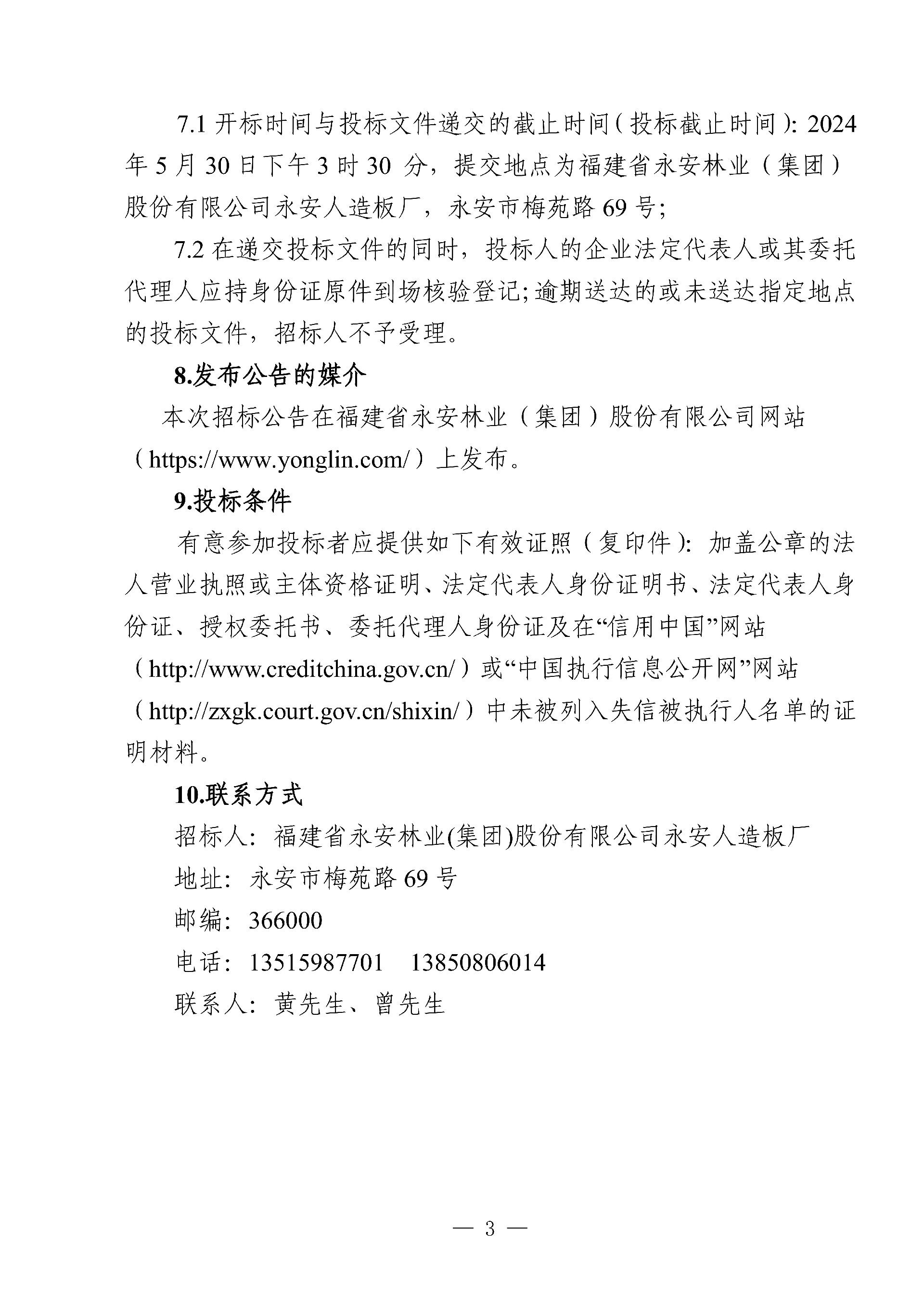 永安人造板廠三聚氰胺采購項目招標(biāo)公告