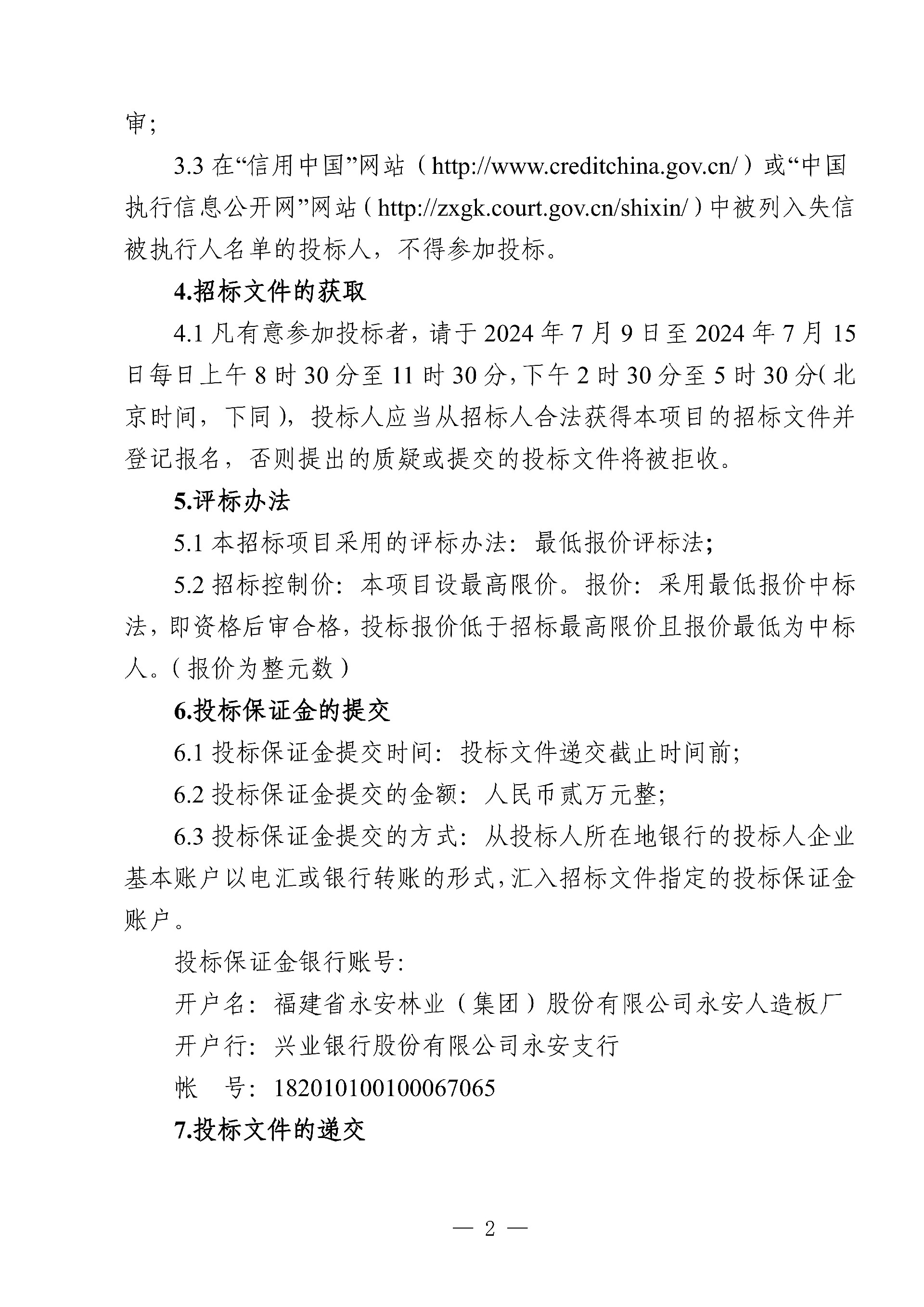 永安人造板廠三聚氰胺采購項(xiàng)目招標(biāo)公告