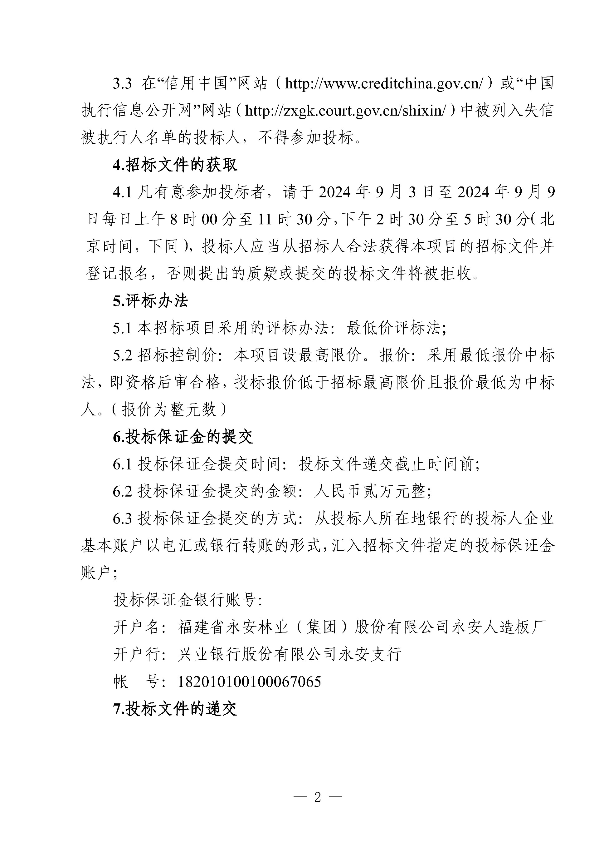 永安人造板廠工業(yè)甲醛溶液采購項目招標(biāo)公告