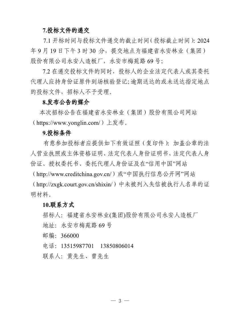 永安人造板廠工業(yè)甲醛溶液采購(gòu)項(xiàng)目招標(biāo)公告