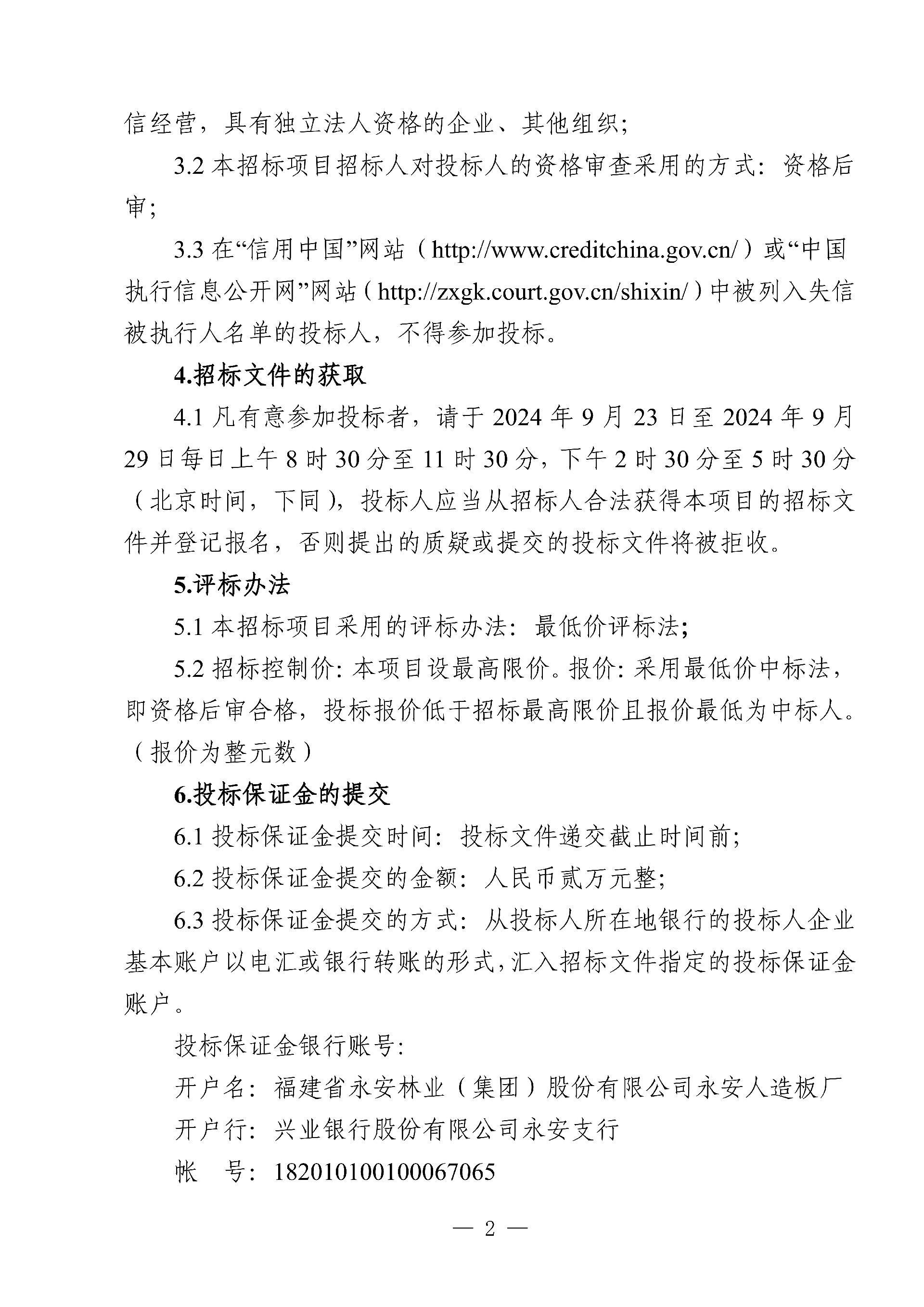 永安人造板廠工業(yè)甲醛溶液采購項(xiàng)目(二次招標(biāo))招標(biāo)公告
