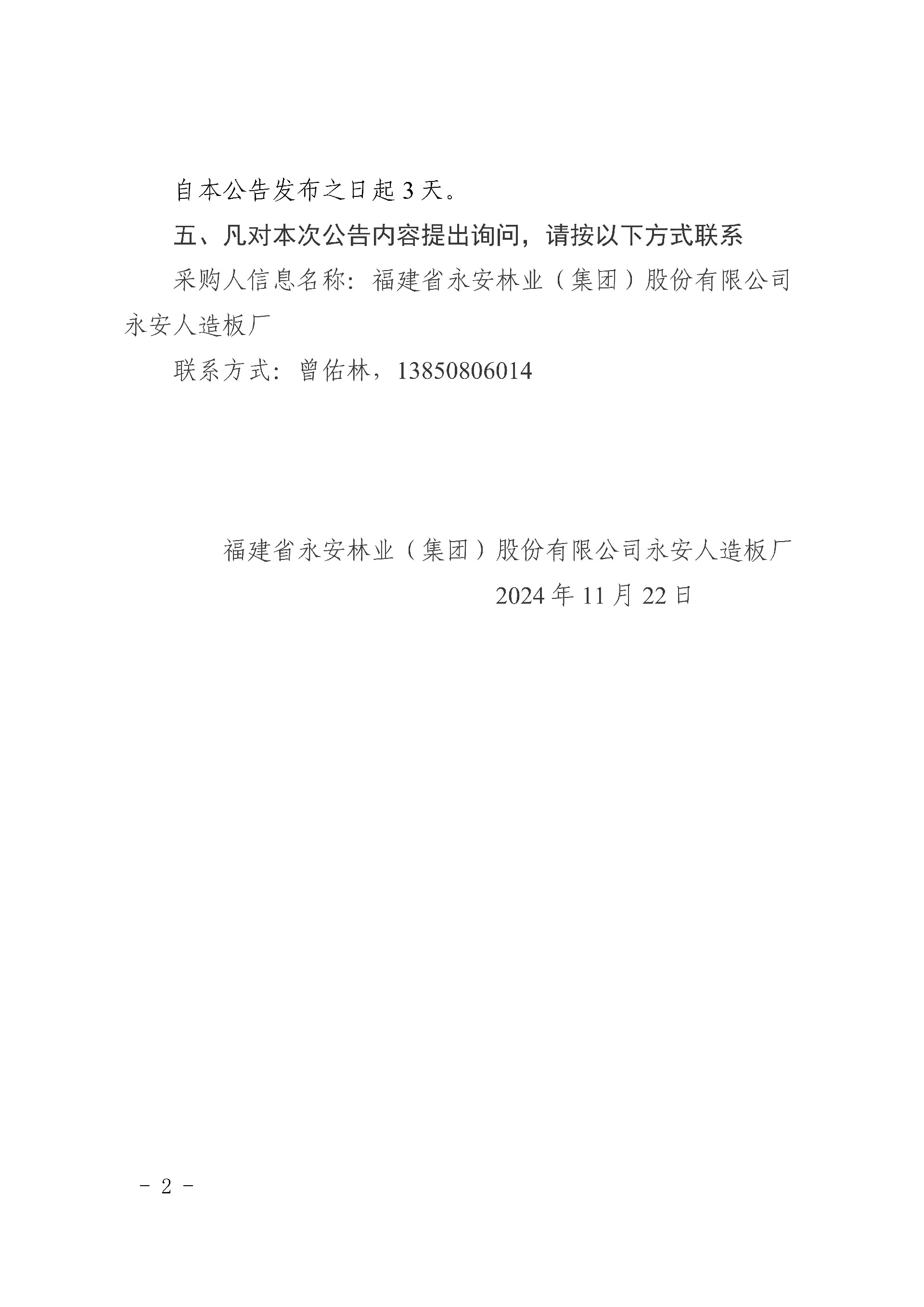 永安人造板廠工業(yè)甲醛溶液采購項目招標公告