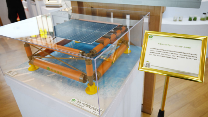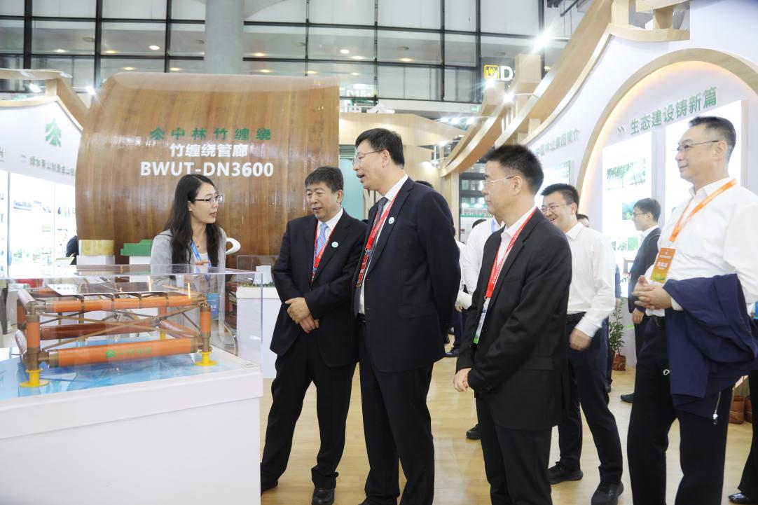 “科技創(chuàng)新引領(lǐng)新質(zhì)生產(chǎn)力發(fā)展”成果展示是中林集團(tuán)本次參展的一大亮點(diǎn)。展會現(xiàn)場,集團(tuán)設(shè)立裝配式木竹結(jié)構(gòu)建材、竹基復(fù)合材料和中林系列家居建材展區(qū),展出一系列綠色低碳創(chuàng)新產(chǎn)品,如兼具低成本、高強(qiáng)度、低排放優(yōu)勢,可供廣泛用于市政、水利、交通等領(lǐng)域的竹纏繞綜合管廊及竹纏繞復(fù)合管;環(huán)境友好、耐腐蝕、價低質(zhì)優(yōu)的竹基海上光伏平臺、冷卻塔竹格填料;具有節(jié)能固碳、保溫調(diào)濕、抗震防火等突出優(yōu)勢的裝配式木竹結(jié)構(gòu)建筑,高性能防水木地板、高品質(zhì)人造飾面板和零醛零碳家居產(chǎn)品等,充分展現(xiàn)了中林集團(tuán)強(qiáng)化技術(shù)研發(fā)創(chuàng)新,賦能林業(yè)新質(zhì)生產(chǎn)力的豐富成果。