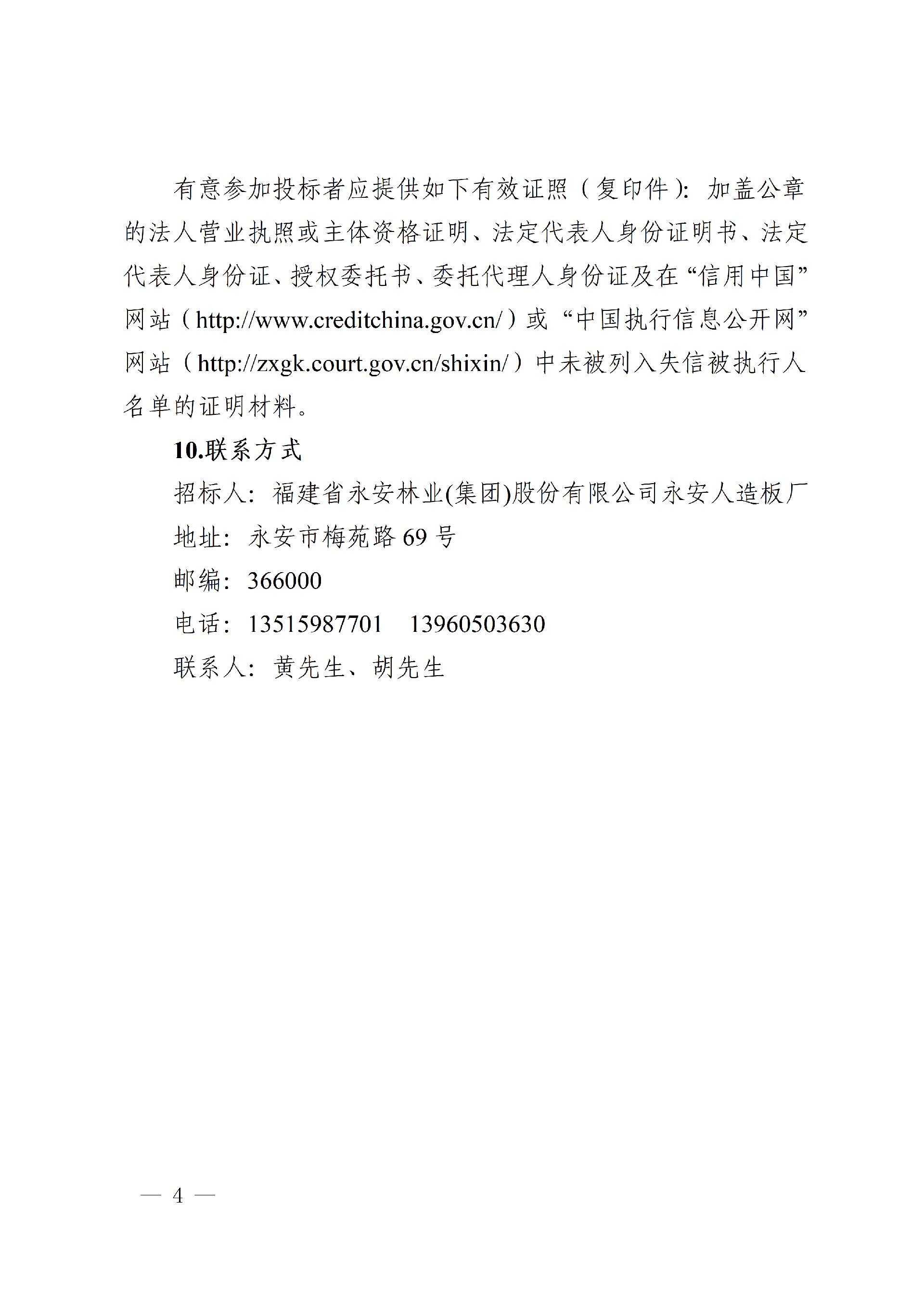 永安人造板廠尿素采購(gòu)項(xiàng)目招標(biāo)公告