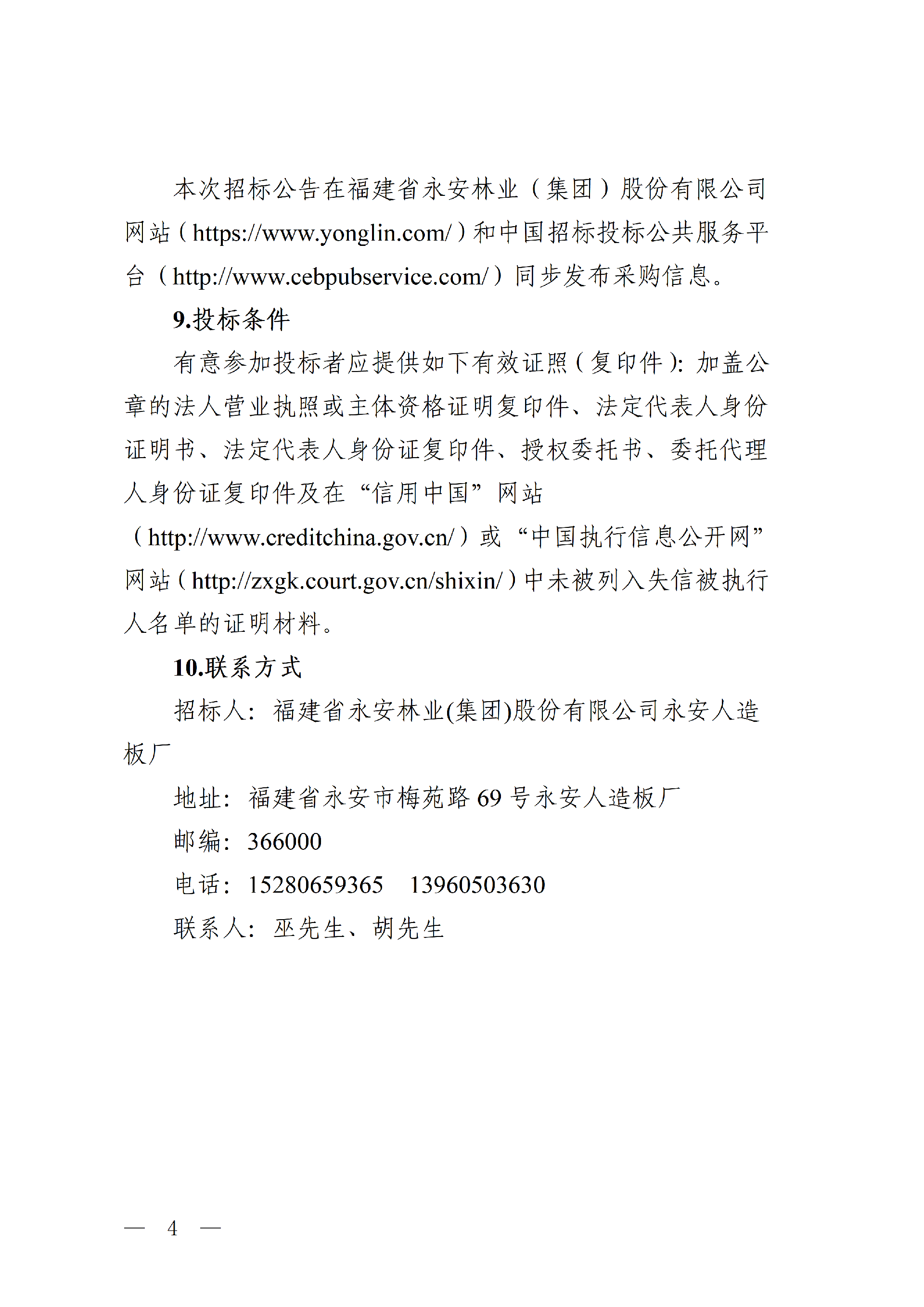 永安人造板廠工業(yè)甲醛溶液采購項目招標(biāo)公告