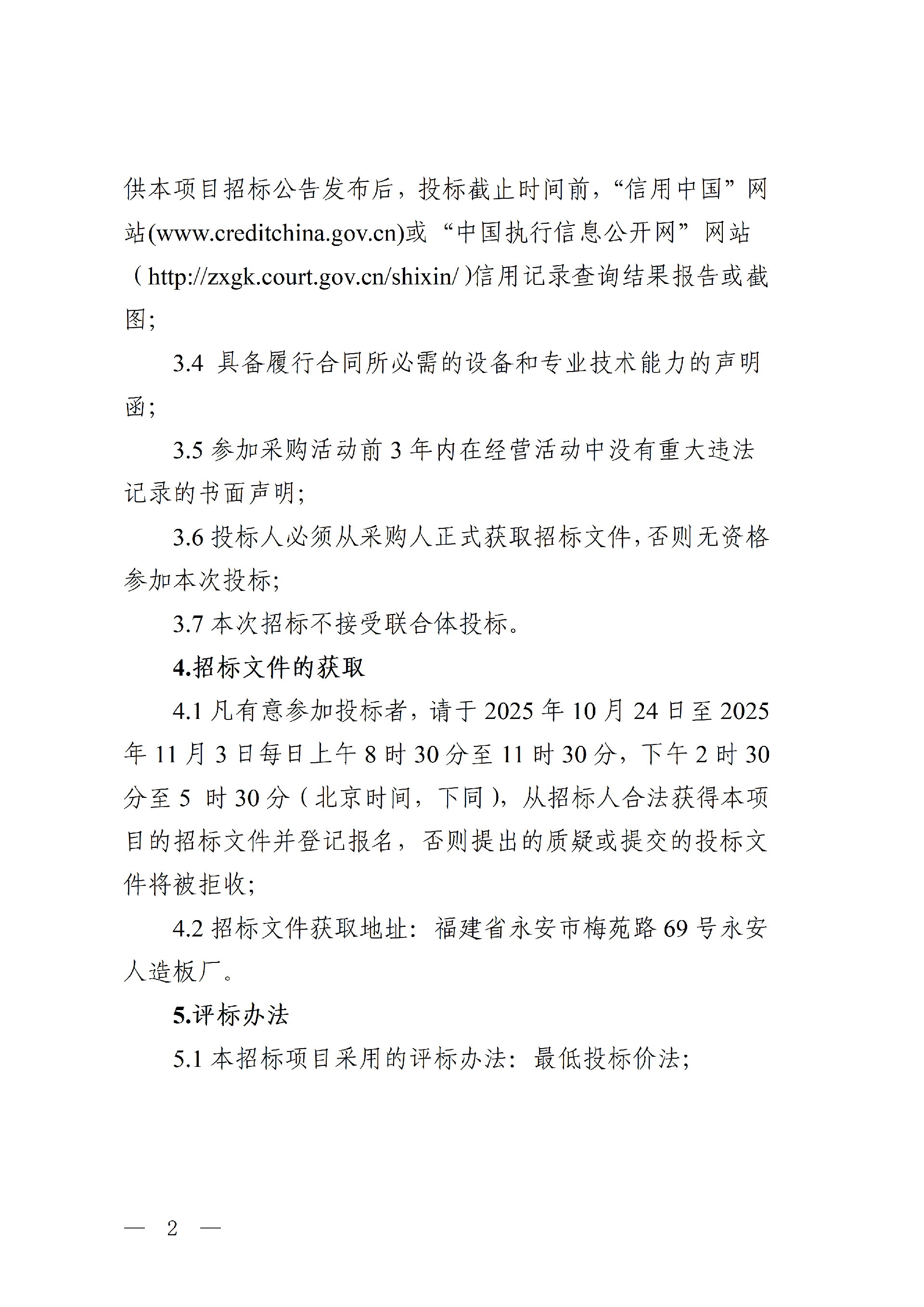 永安人造板廠工業(yè)甲醛溶液采購(gòu)項(xiàng)目招標(biāo)公告