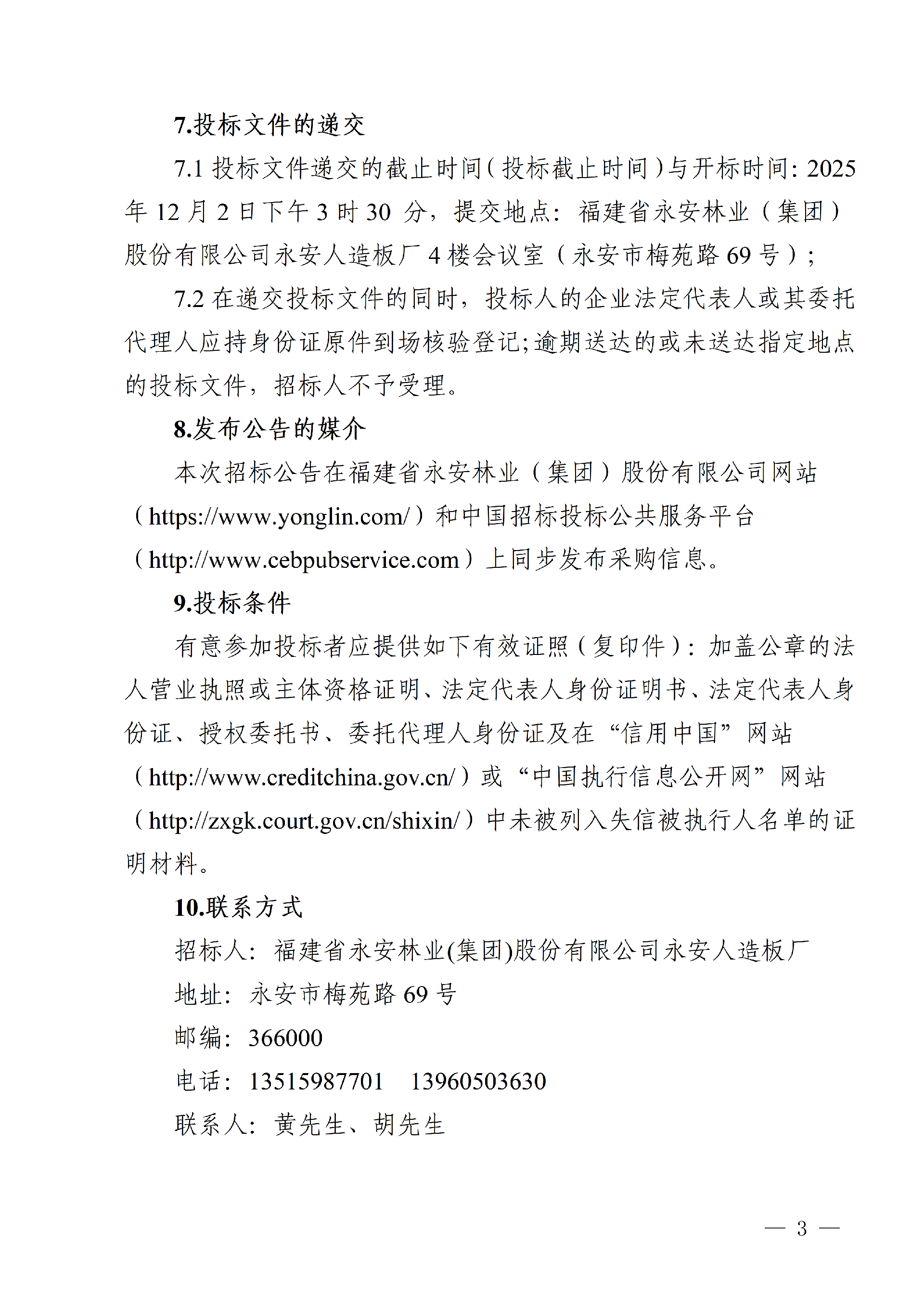 永安人造板廠工業(yè)甲醛溶液采購項目招標(biāo)公告