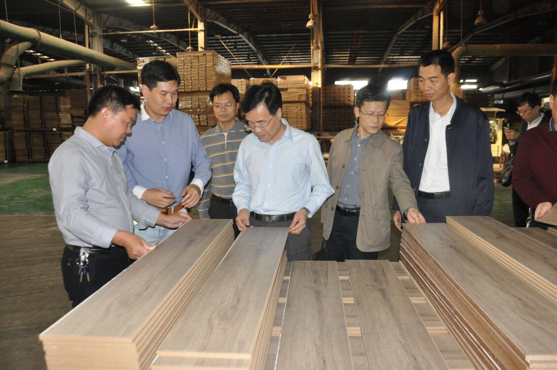 徐錚還深入永安人造板廠三期中纖板生產(chǎn)線和永林藍(lán)豹地板生產(chǎn)車間現(xiàn)場了解生產(chǎn)經(jīng)營、產(chǎn)品、市場及銷售等情況。