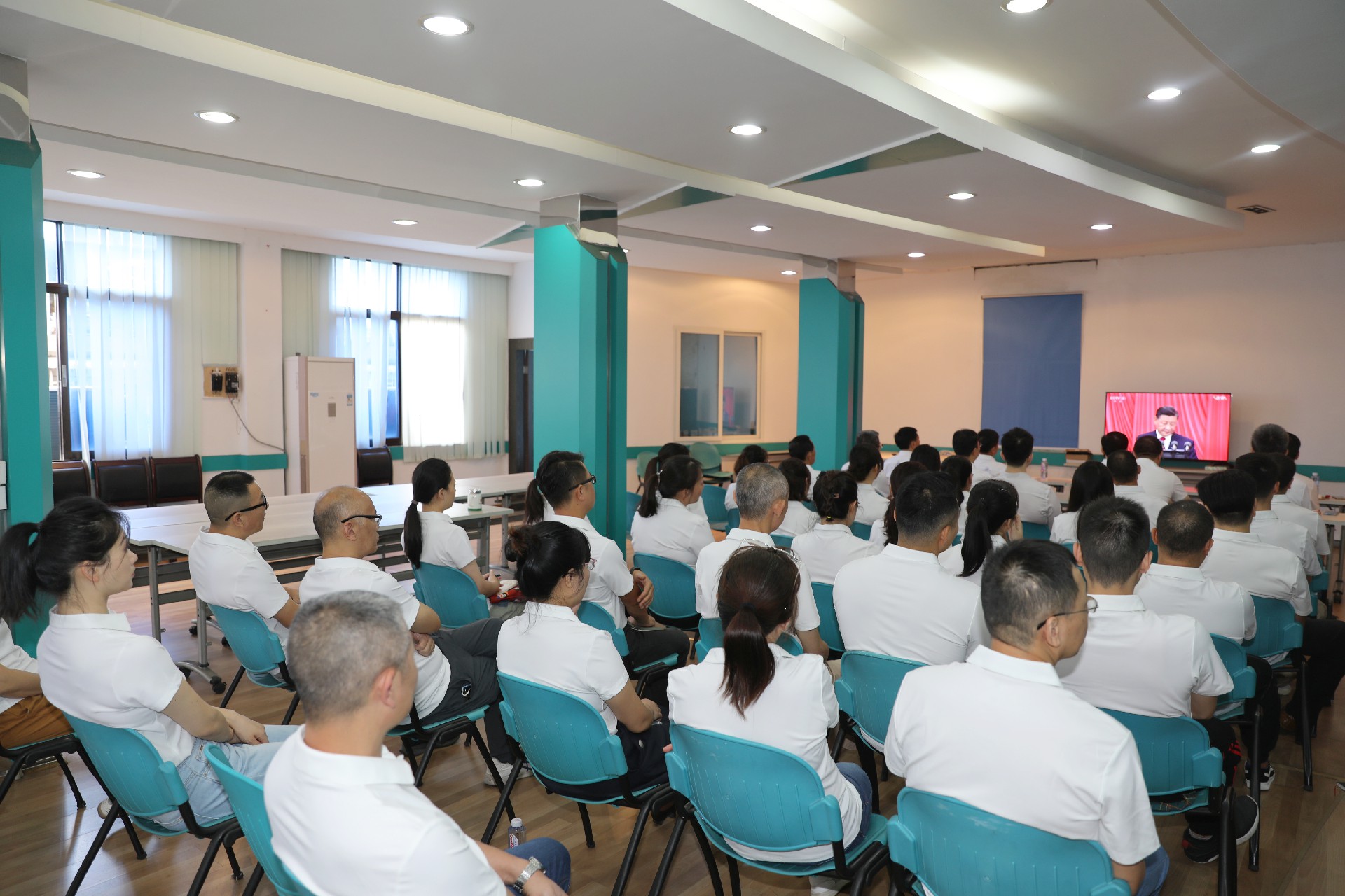 在開幕會開始前,本部及各單位黨員干部職工身穿工服、黨員同志佩戴黨徽,提前來到各收看地點,對央視直播的預熱解讀和二十大的熱點內(nèi)容進行了熱烈討論。會議開始后,各會場全體干部職工,全神貫注地聆聽習近平總書記的報告,過程中也紛紛記錄著報告中的相關要點和自身感悟并在微信群和微信朋友圈轉(zhuǎn)發(fā)大會盛況、在線直播鏈接、二十大報告文字實錄、權(quán)威媒體解讀等內(nèi)容。