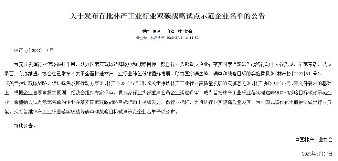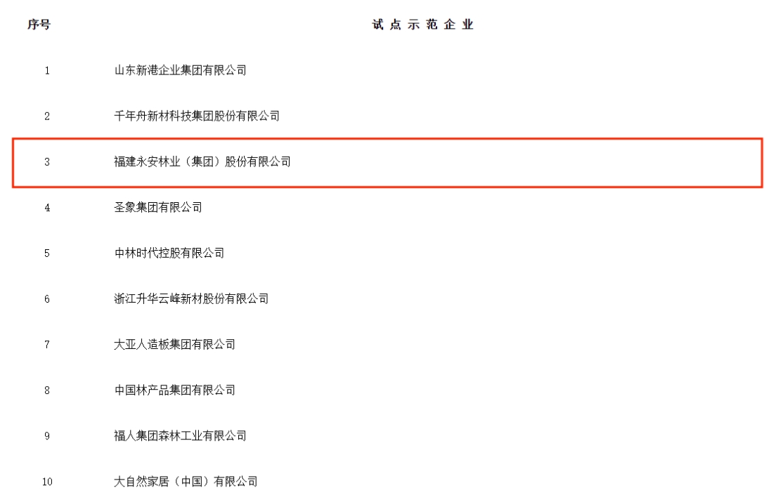 近日,中國林產(chǎn)工業(yè)協(xié)會公布了首批林產(chǎn)工業(yè)行業(yè)雙碳戰(zhàn)略試點示范企業(yè)名單,福建省永安林業(yè)(集團)股份有限公司成功入選,成為首批林產(chǎn)工業(yè)行業(yè)落實碳達峰碳中和戰(zhàn)略目標試點示范企業(yè)之一。