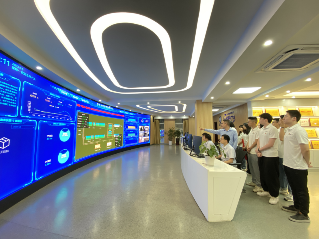 隨后,青年團(tuán)員一行來到永安市蓮花山污水廠,在蓮花山污水廠負(fù)責(zé)人的帶領(lǐng)下參觀學(xué)習(xí)水務(wù)調(diào)度智能化系統(tǒng)運(yùn)作方式和污水處理工藝流程。青年團(tuán)員通過現(xiàn)場參觀研學(xué),感受智能化手段為環(huán)境保護(hù)的賦能作用、樹立人與自然和諧共生的科學(xué)理念、領(lǐng)悟生態(tài)文明建設(shè)的重要意義。