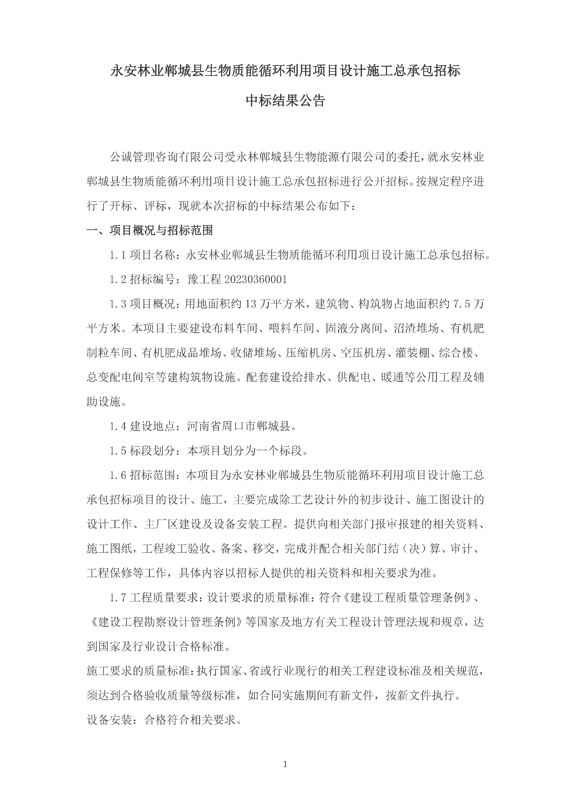 永安林業(yè)鄲城縣生物質(zhì)能循環(huán)利用項(xiàng)目設(shè)計(jì)施工總承包招標(biāo)中標(biāo)結(jié)果公告